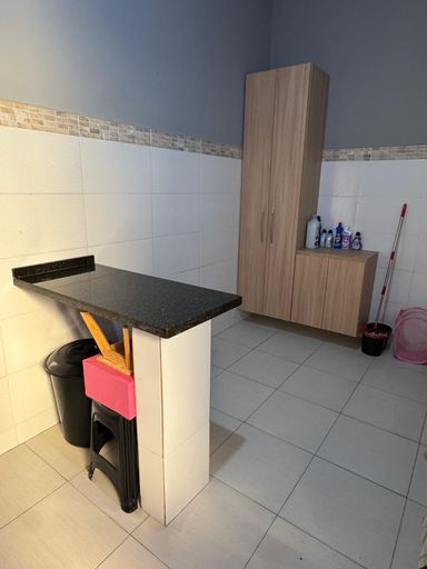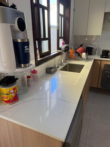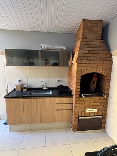 Área gourmet aconchegante, equipada com pia, cuba e torneira novinhos em folha