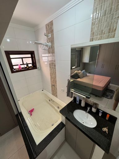 2 quartos, sendo 1 suíte com banheira de hidromassagem para seus momentos de relaxamento