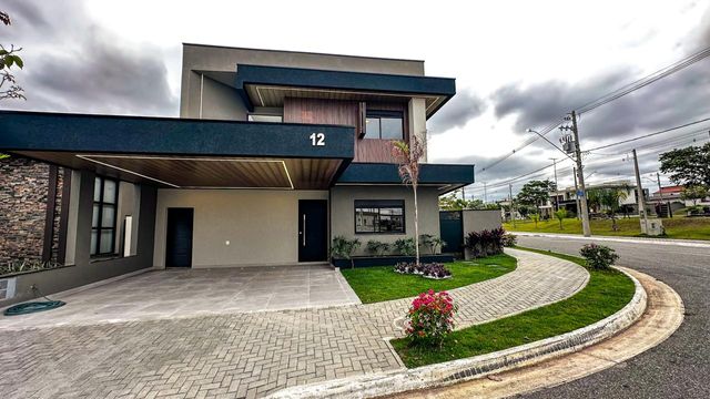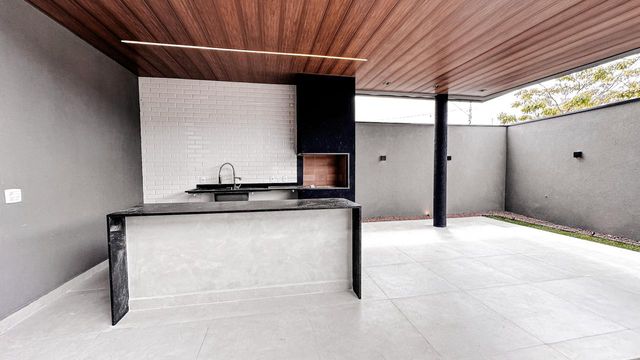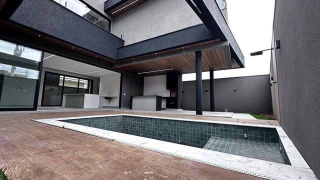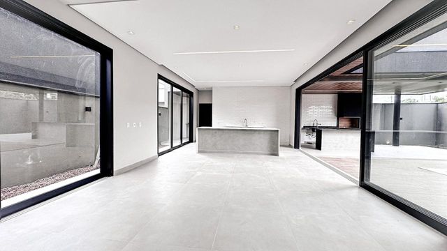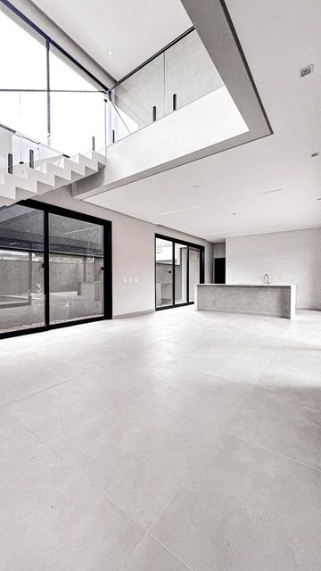 - Ambiente térreo integrado: sala de estar com pé direito duplo, sala de jantar, cozinha e área gourmet se conectam em perfeita harmonia, criando um espaço ideal para convivência e recepções inesquecíveis.