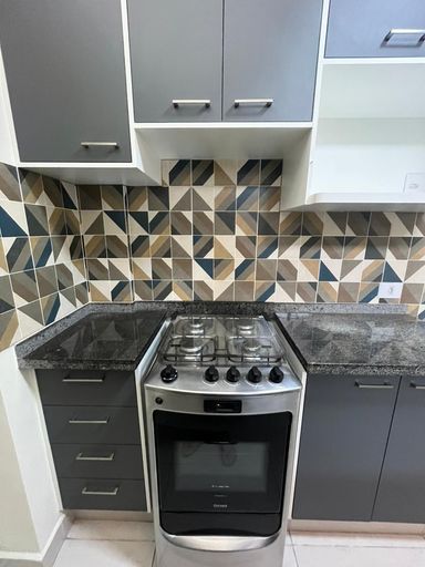 Cozinha mobiliada, equipada com fogão