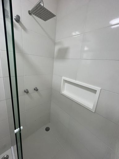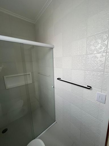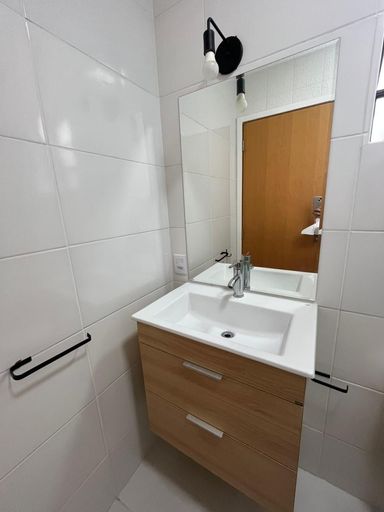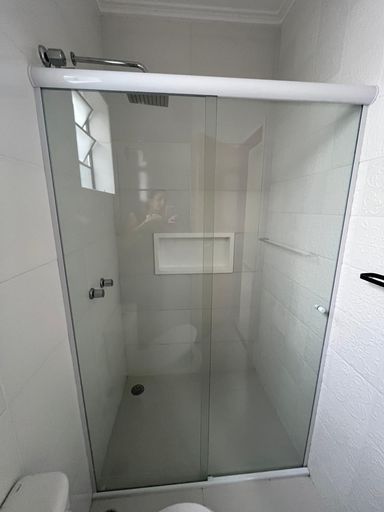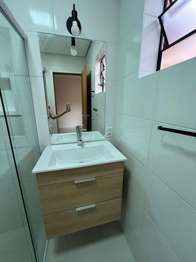 Banheiros com box blindex, gabinete e espelho