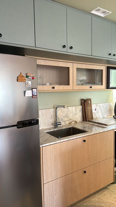 A integração entre sala e cozinha cria um espaço aconchegante e perfeito para o dia a dia e para receber visitas. A cozinha planejada já está equipada com fogão por indução e ainda conta com opção de uso de gás natural, trazendo mais flexibilidade e tecnologia para sua rotina.